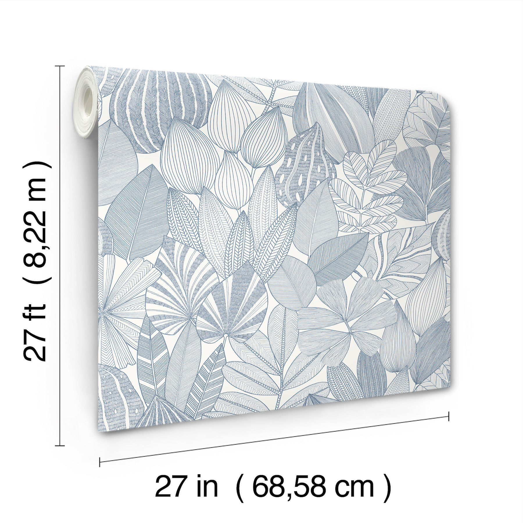 Intricate linework brings lively energy to an array of woodland plants in this chic botanical design. Illustrated in blue ink against cool white. Mathias is an unpasted, non woven wallpaper measuring 27 inches wide by 27 feet long, covering approximately About 60.8 square feet square feet per roll.