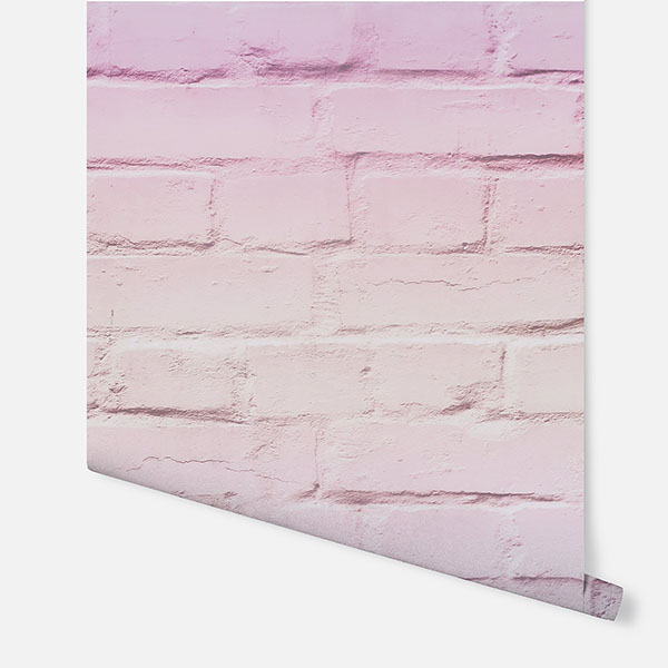 Classic brick is given a playful finish with ombre striping. Seen here in shades of pink, blush, and peach. Winifred is an unpasted, paper wallpaper measuring 20.9 inches wide by 33 feet long, covering approximately 57.5 square feet per roll. Colorway: Pink