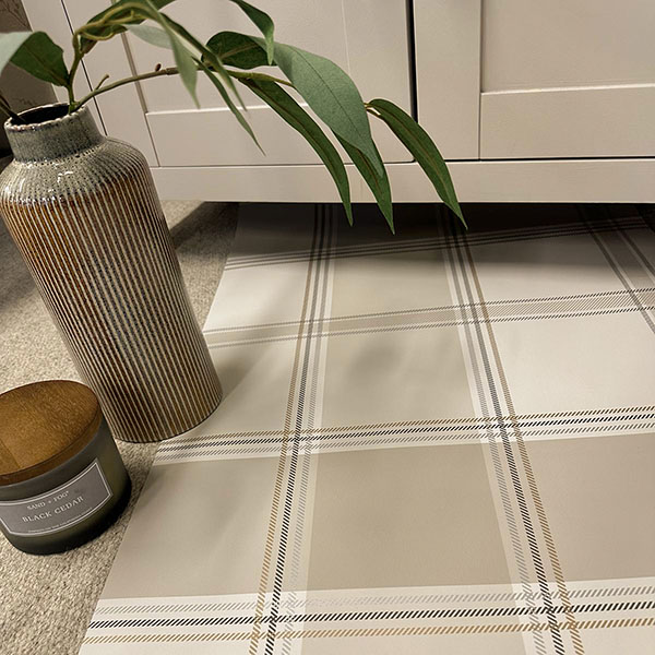 Few patterns offer as much visual comfort as plaid. This wallpaper combines the appeal of buffalo check and windowpane patterns for an embellished take on the classics. Seen here in shades of cream, beige, brown, metallic gold, and metallic silver. Braxton is an unpasted, paper wallpaper measuring 20.9 inches wide by 33 feet long, covering approximately 57.5 square feet per roll. Colorway: Beige