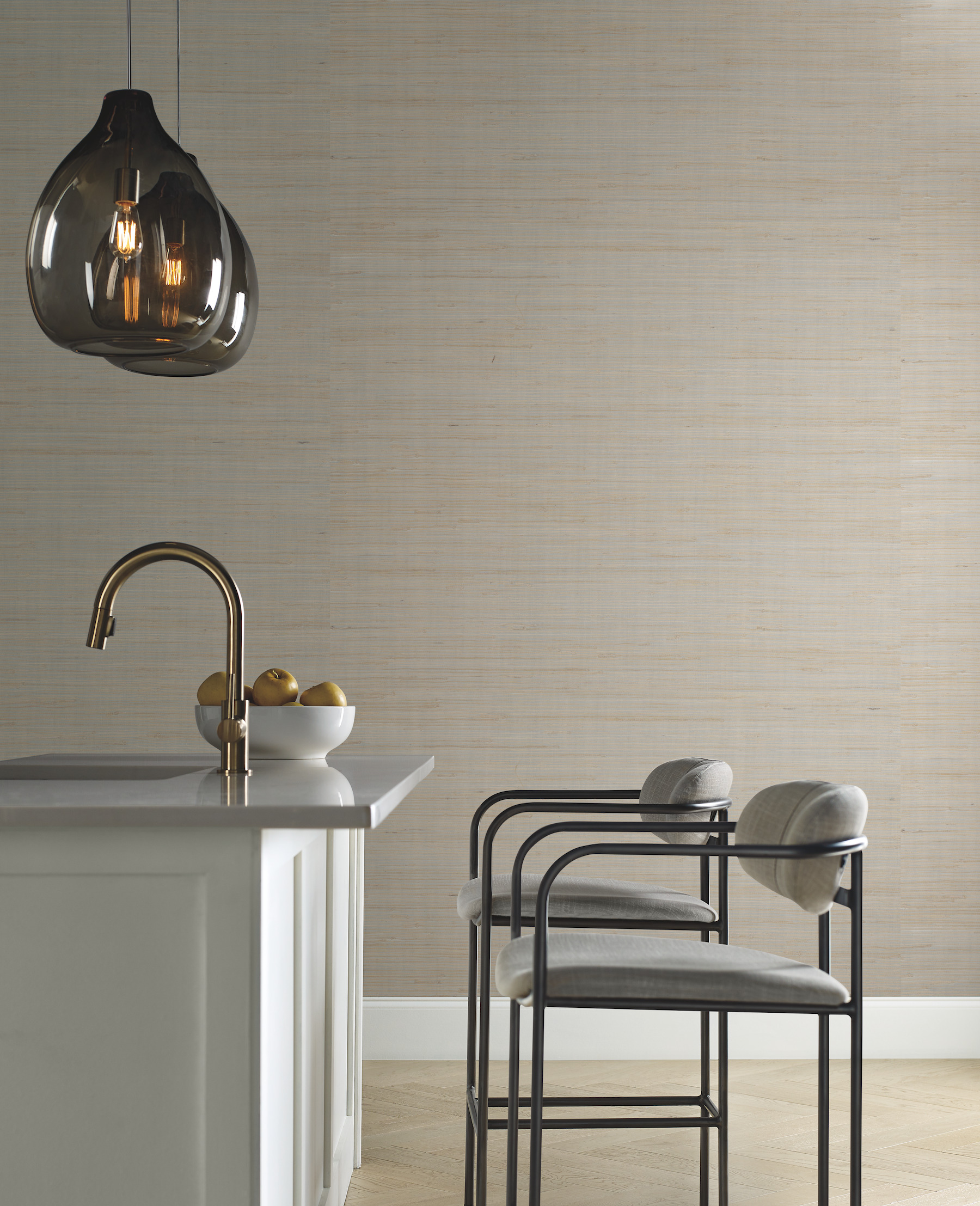 A luminous backing of metallic adds panache to the organic, knotted grasses of pattern Metallic Jute. A luminous backing of metallic adds panache to the organic, knotted grasses of pattern Metallic Jute.This Silver & Beige Metallic Jute Wallpaper measures 36 inches wide by 24 feet long, covering approximately 144 square feet per roll. The subtlety of nature’s elegant resource is captured in York Wallcoverings Grasscloth Resource, a collection of high performance and luxurious organic grasses and weaves.