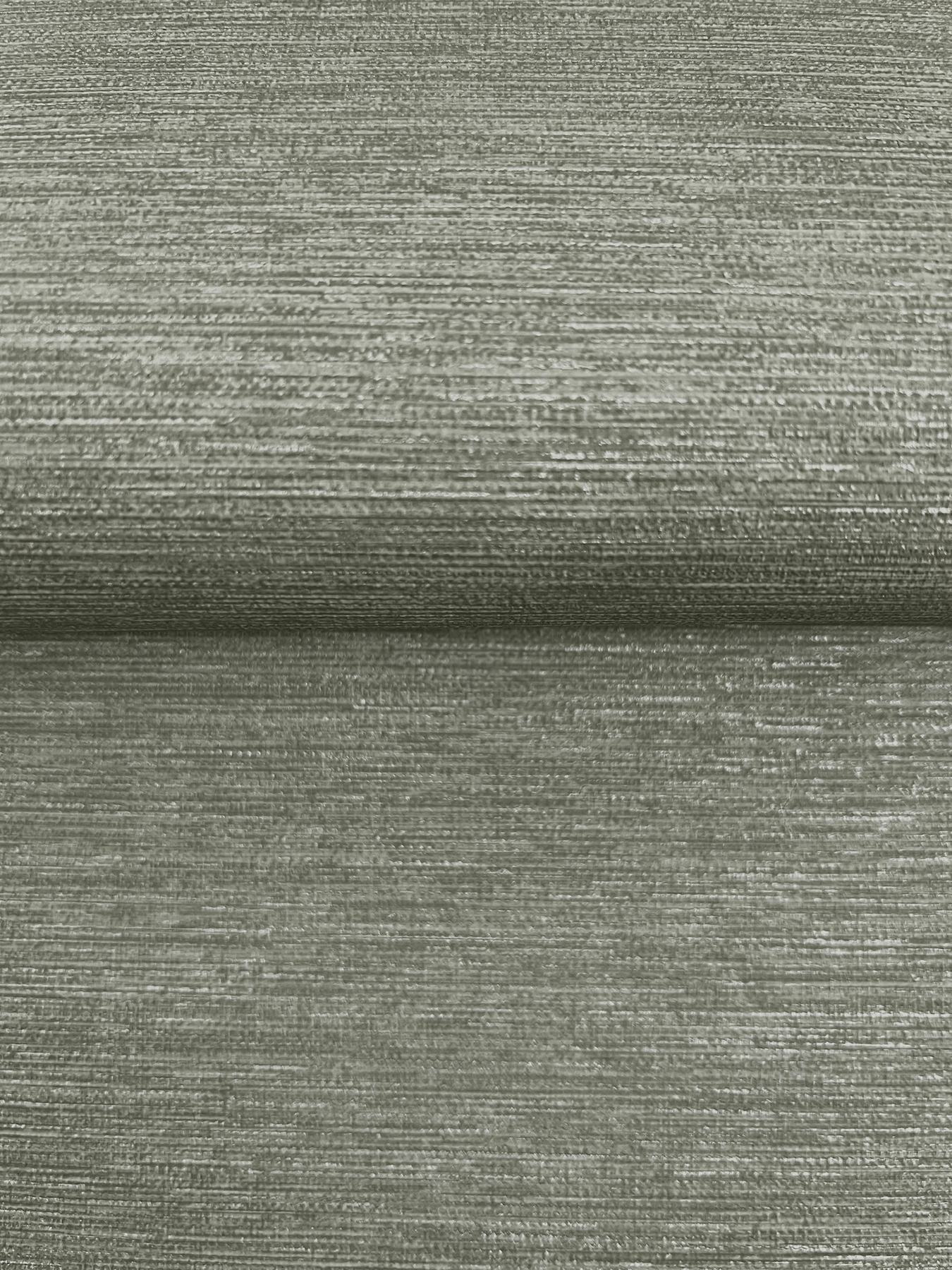 The subtle texture of this wallpaper mimics the look and feel of woven fabric. Featured here in dark green tinged with silver. Declan is an unpasted, fabric backed vinyl wallpaper measuring 27 inches wide by 27 feet long, covering approximately 60.8 square feet per roll.