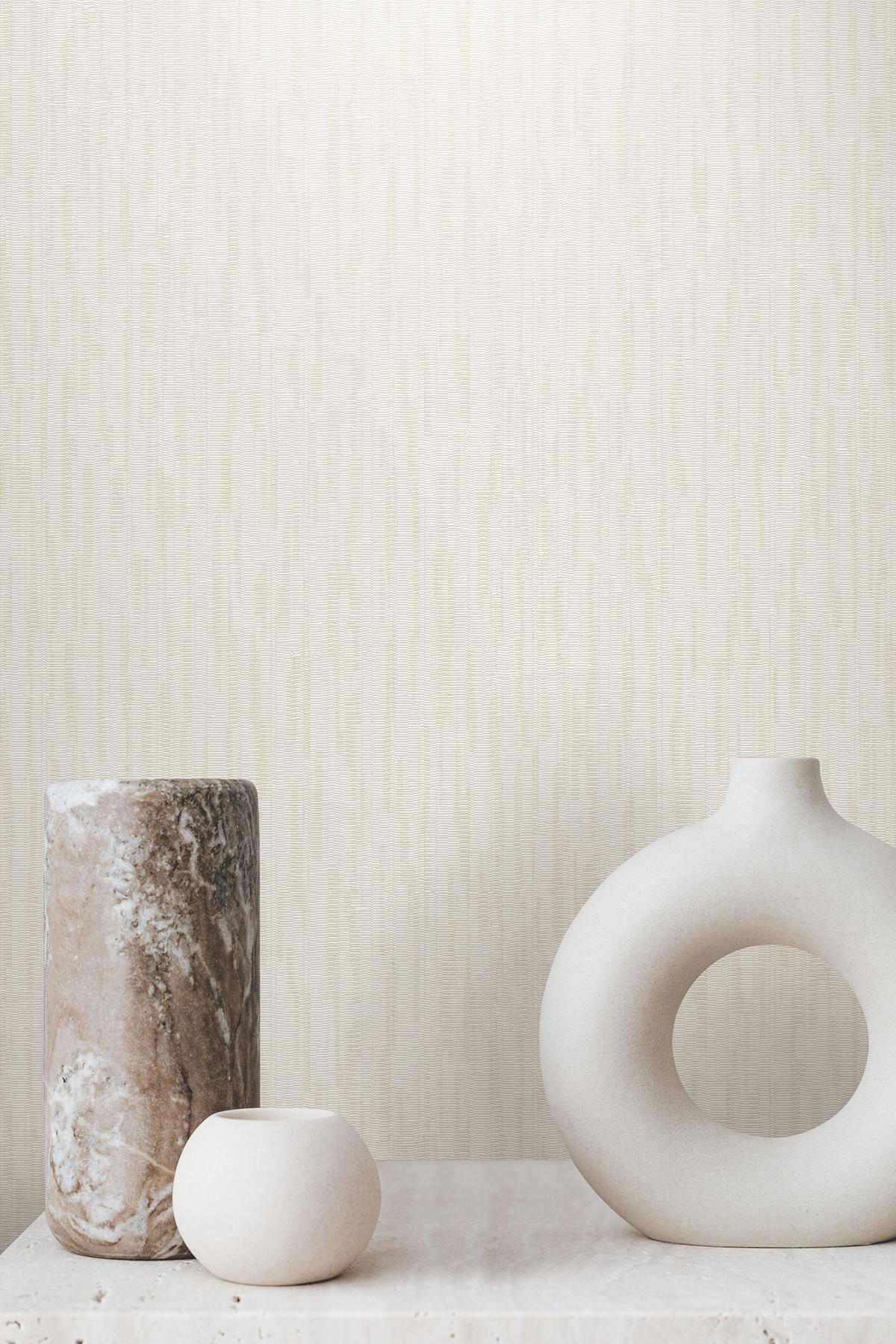 Intricate, textural detailing creates narrow, tactile columns along this monotone wallpaper. Pictured here in pale silver. Orson is an unpasted, fabric backed vinyl wallpaper measuring 54 inches wide by 90 feet long, covering approximately 405 square feet per roll.