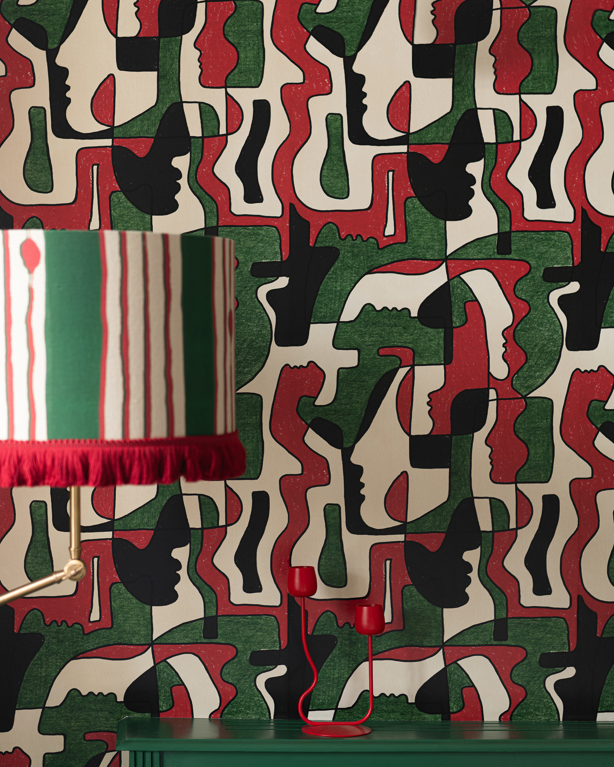 While its translation refers to a feeling of nostalgia, the Saudade print leaves you feeling far from melancholy with its vibrant hues and abstract configuration bringing a flamboyant opulence into the home. The print’s abstract take on cubism, with facial profiles intertwined within the piece, create a unique backdrop when displayed on a larger scale – making it perfect for large scale rooms where the intensity of the palette has space to breathe. Collection: Jazz Live