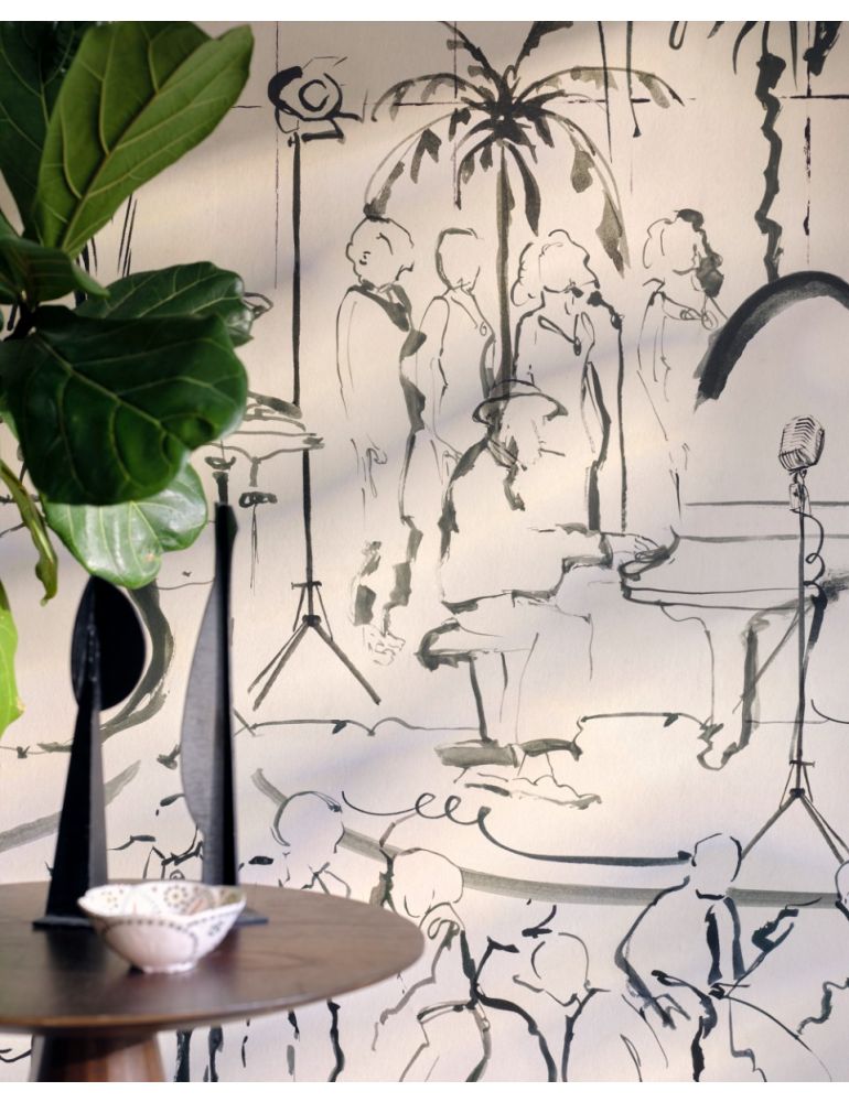 Capturing the conviviality and ambience of jazz club venues across the city, The Club exudes energy, with a touch of sophistication. Its illustrative sketches transport you directly to the club’s floor, where soulful sounds echo across the venue, bringing joy to everyone there and immersing everyone in the depth and musicality of jazz. The setting is brought to life through statement chandeliers and statuesque palm trees, adding to its grandeur and opulence while conversations flow and more people get up to dance, allowing time to slip away and finding joy in the magic of the moment. Collection: Jazz Live