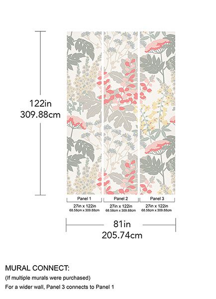 Celebrate feminine elegance with this lush floral mural. Gorgeous woodland flowers have been reimagined in an immense scale and dreamy color palette of pastel pinks, blues, and greys. Pink Paradise Pink & Dove Grey Wall Mural comes on 3 panels and measures 6-ft 8-in wide by 10-ft 2-in long when assembled.