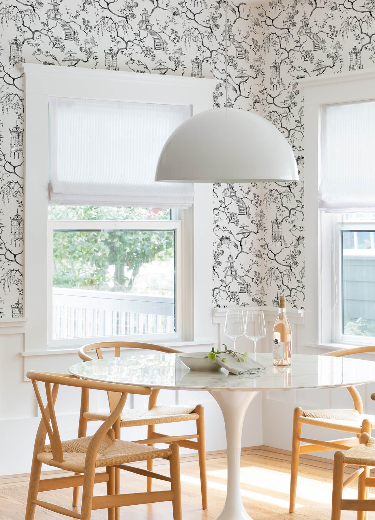 This charming chinoiserie wallpaper will bring timeless elegance to your interiors. The scenic design features flowering trees, tranquil pagodas, cranes, and parasols, all inked in rich charcoal watercolors imbued periodically with a diminutive diamond motif. Serena is an unpasted, non woven wallpaper.
