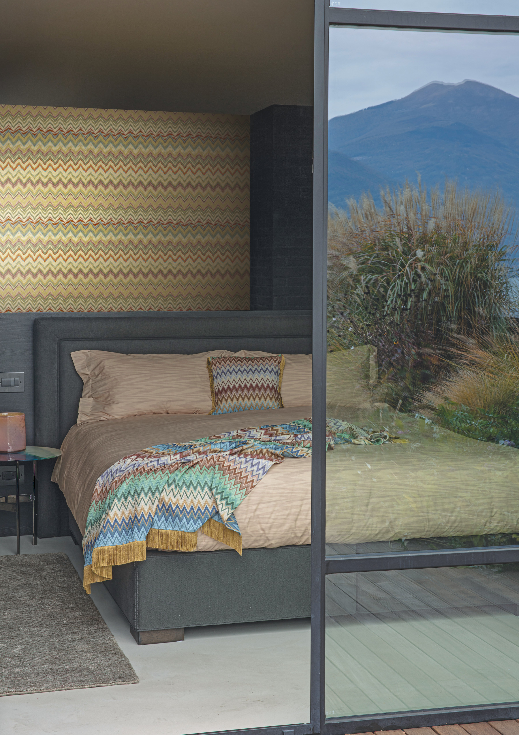 The textural pattern Happy Zigzag emulates the iconic chevron patterns of the couturier Missoni fashion house. This Happy Zigzag Wallpaper measures approximately 39.3 inches wide by 33 feet long, covering About 108.1 square feet per roll. Durable and easy to remove from primed walls, this friendly to hang unpasted nonwoven designer wallpaper is created with a special blend of fibers, making it both washable and tear resistant. Colorway: Gold