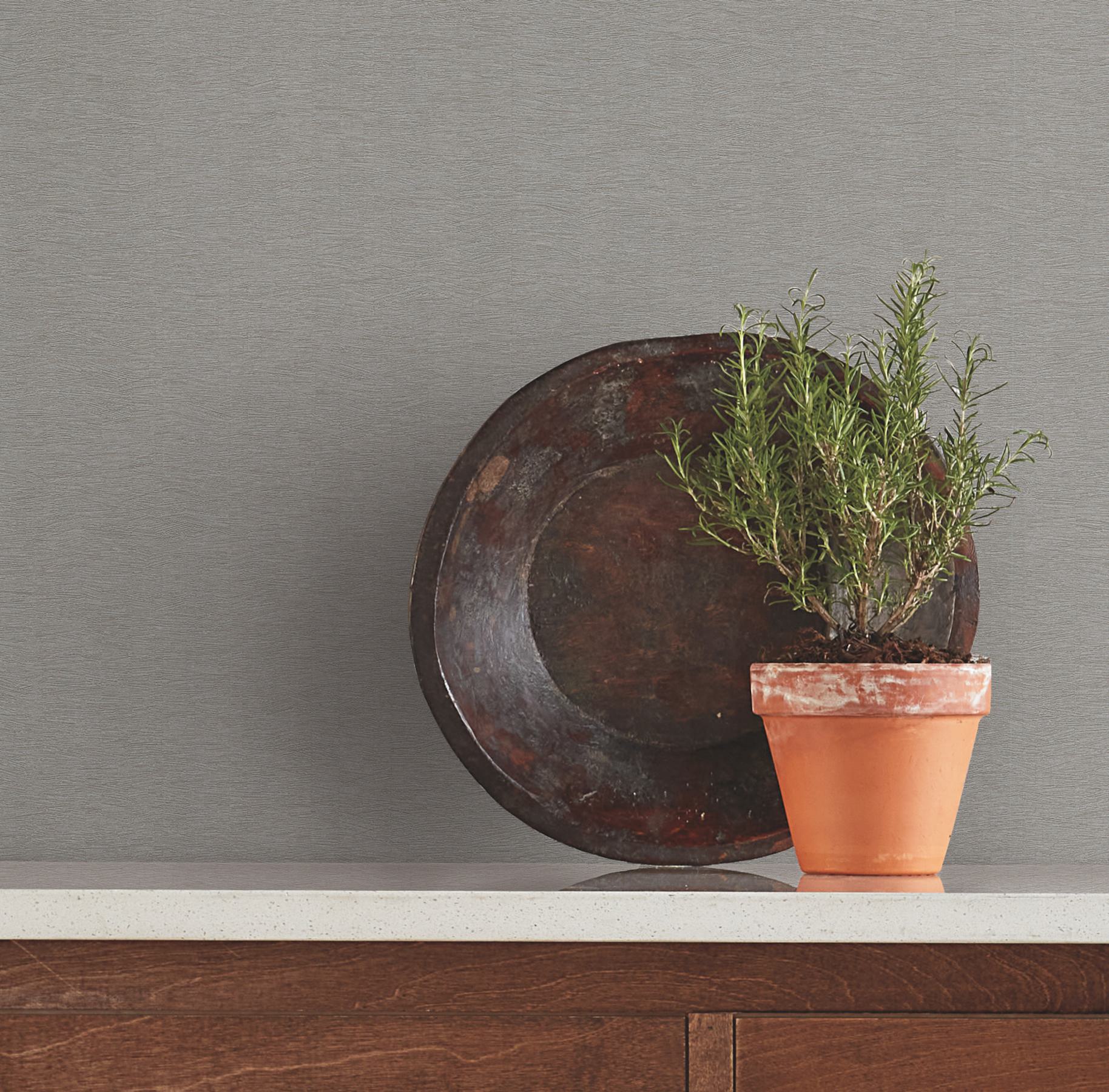 Densely packed diagonal dashes create a dimensional surface with the tactility of tree bark. Featured here in pewter. Gathered is an unpasted, fabric backed vinyl wallpaper measuring 27 inches wide by 27 feet long, covering approximately About 60.8 square feet square feet per roll.