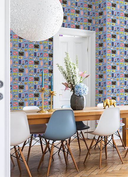 Tin out of tin for design, this peel and stick wallpaper is perfect for adding some savory style to any space that craves a little extra flavor. This pattern features a colorful assortment of tinned sardines over a blue backdrop. Blue Sardine Tins Peel and Stick NuWallpaper comes on one roll that measures 20.5 inches wide by 18 feet long.
