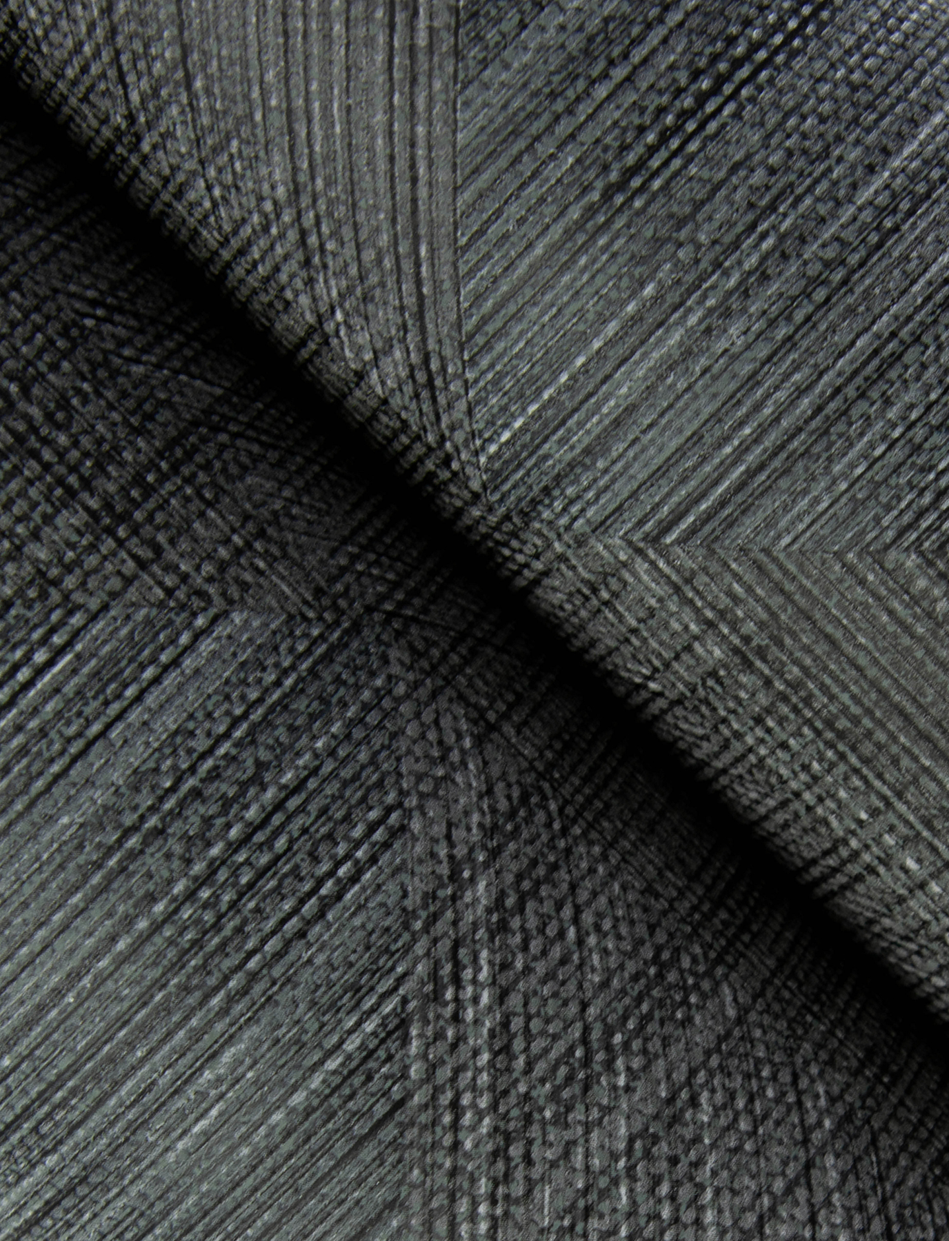 This sophisticated geometric wallpaper has the intricate interwoven detailing of parquet flooring. The pattern is formed from triangles, squares, and rhombi of rich black and charcoal grey with varying, textured grain. Presley is an unpasted, non woven wallpaper measuring 20.5 inches wide by 33 feet long, covering approximately 56.4 square feet per roll.