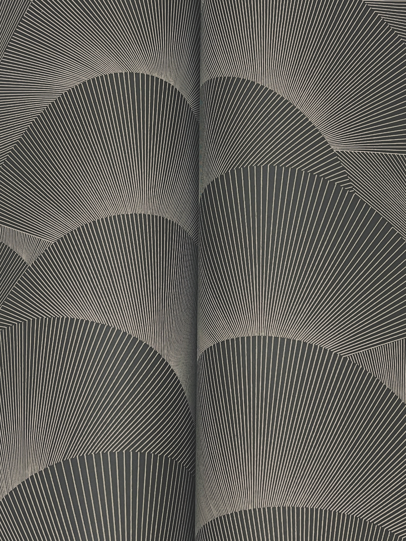 Slender line drawings of half-moon scallops create layers of demilune fans gathered in Morning Shell's allover pattern of subtle shadows and optic illusions, shown here in black with grey. This Morning Shell Wallpaper measures approximately 27 inches wide by 27 feet long, measuring approximately 60.8 square feet per roll. The tea garden provides a meditative pathway from the outside world to inner tranquility. Experience the quiet luxury and uncompromising beauty within this second edition Tea Garden collection.