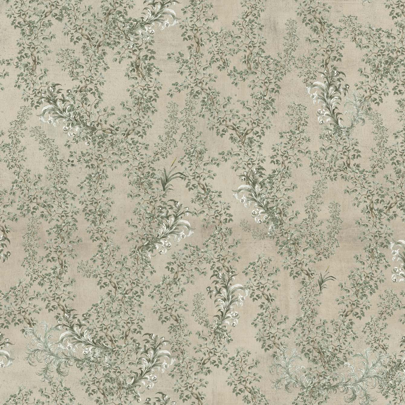 A wallpaper masterpiece design with stunning birds of Paradise illustrated on a idilic background full of blooming branches. A rich coloured design with beautiful details made on 3 rolls. Available on two different colour options - Green Sheen and Grey - and also as a home fabric printed on English cotton pile velvet.