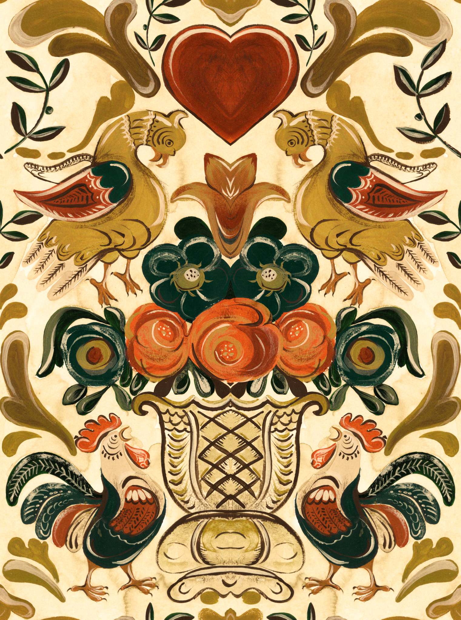 This pretty paper takes traditional French Toile de Jouy, first popular in the late 18th century, and reinterprets it for the present day with a Tyrolean twist. A typically mountainside pastoral scene showing intricate mountains, forests, farmers and cows all rendered in a soft, two-colour colour print.