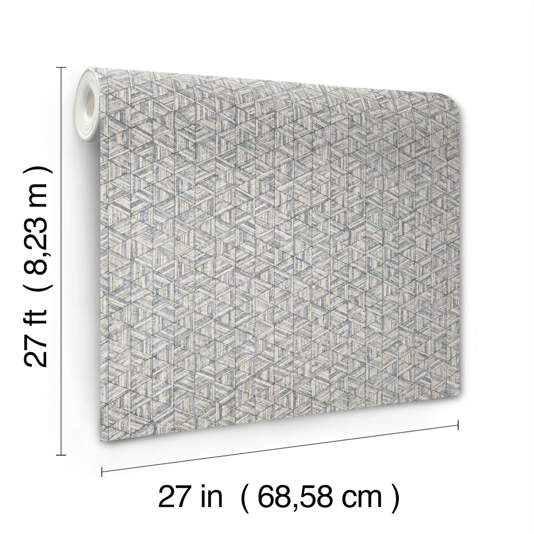 The triangles of Rune shift and shimmer as they form a modern linear geometric of diamonds within diamonds across a pearled canvas, shown in oyster beige with black. This Rune Wallpaper measures approximately 27 inches wide by 27 feet long, measuring approximately 60.8 square feet per roll. The glamour of metropolitan life inspires this sophisticated collection of classic, geometric, and textural High Performance Type II products styled for residential and boutique commercial spaces.