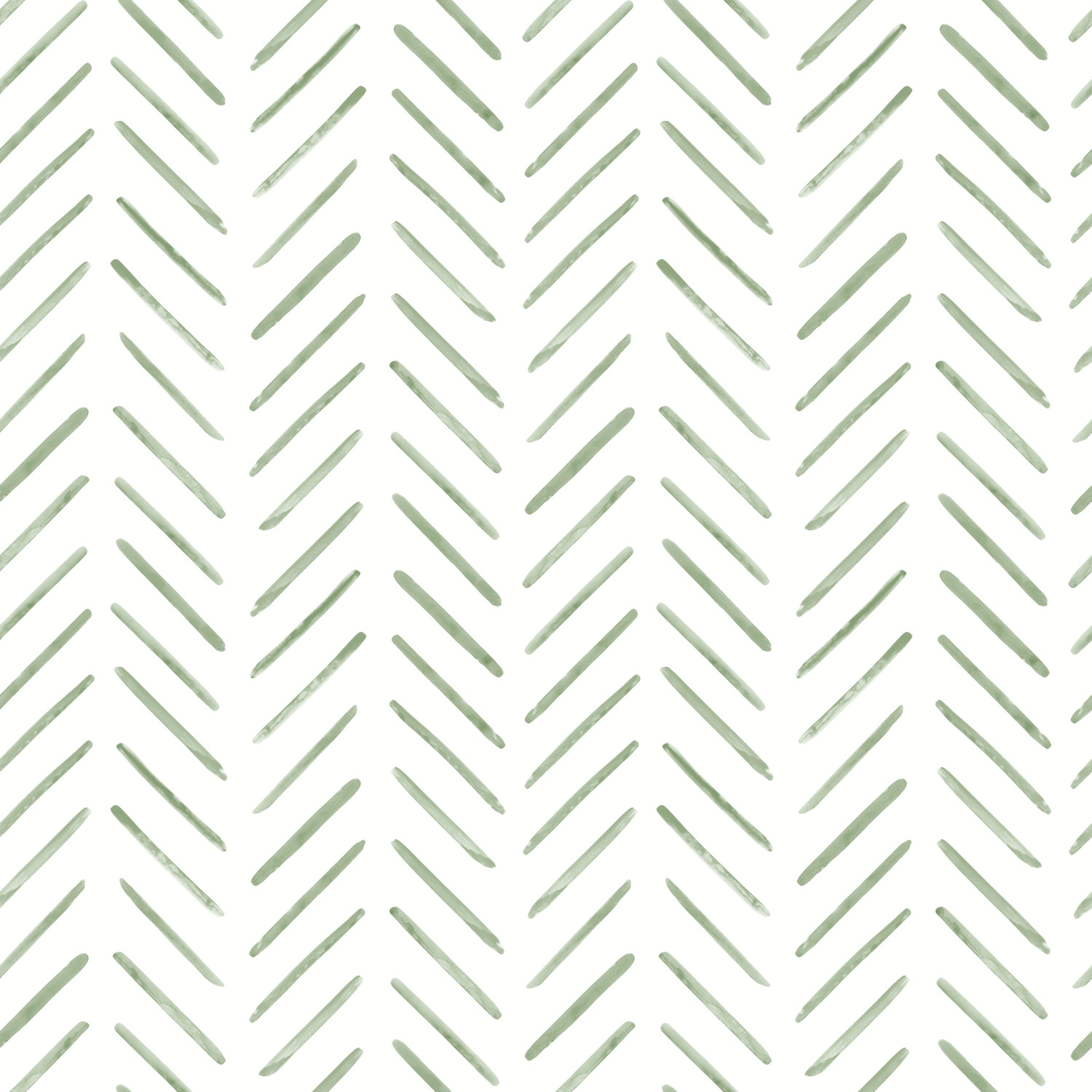 Painted Herringbone create a simple zig zag pattern with a series of single brushstrokes. This Painted Herringbone Wallpaper measures approximately 20.5 inches wide by 33 feet long, covering About 56.4 square feet per roll. Manufactured on Sure Strip™, a unique high performance substrate, this ultra-easy removable wallpaper is guaranteed easy to install and easy to remove; simply use water to activate. Colorway: Green