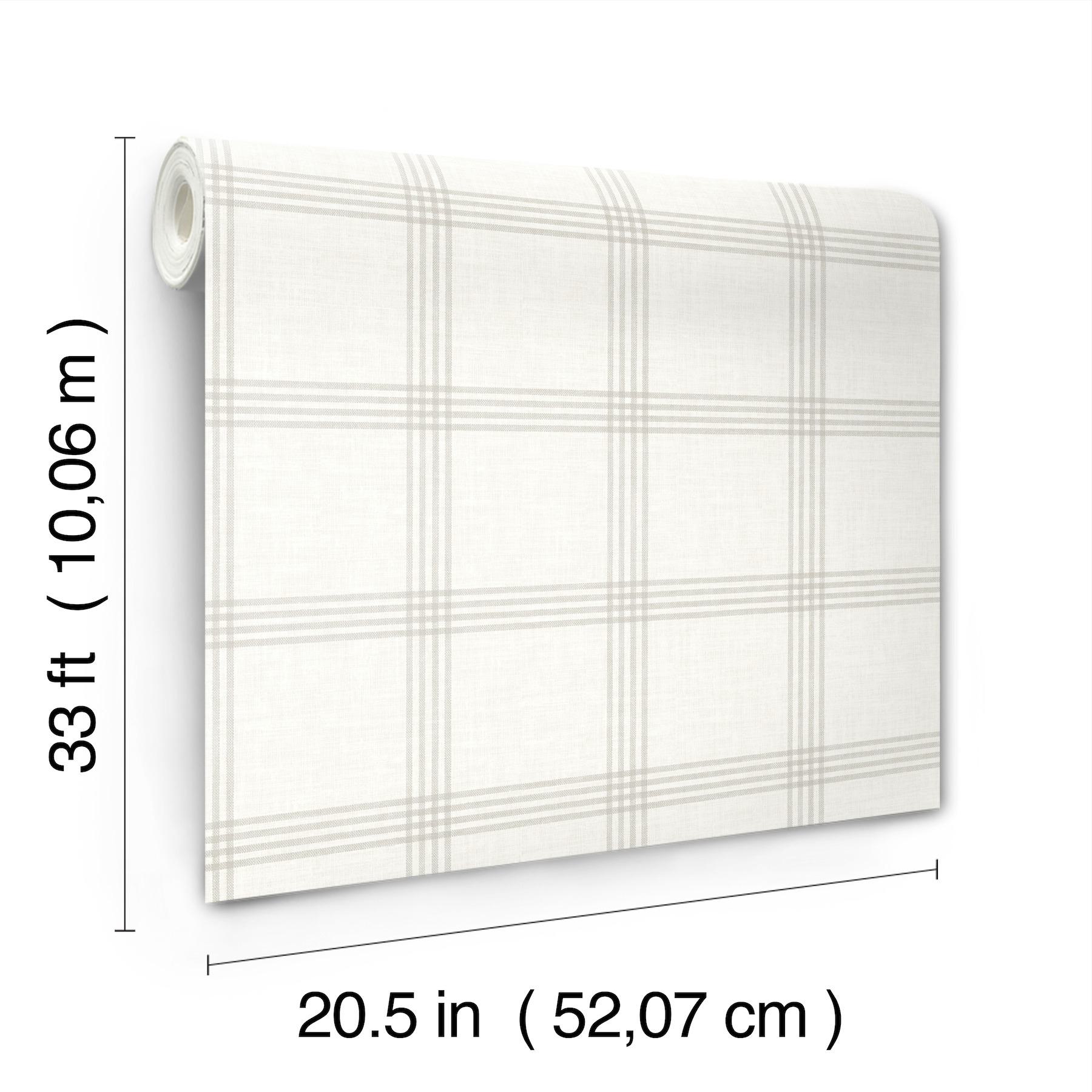 Classic plaid is given a sleek yet charming redesign with simple, silver-grey pinstripe gridlines along a cream faux linen backdrop. Twain is an unpasted, non woven wallpaper measuring 20.5 inches wide by 33 feet long, covering approximately 56.4 square feet per roll.