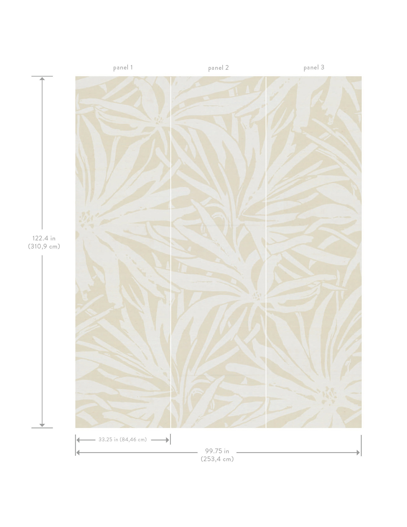 An inviting tangle of floral silhouettes offers simple sophistication in Floral Canopy Mural. Seen here in white against warm beige. This Floral Canopy Mural Mural measures 8-ft 4-in wide by 10-ft 2.4-in tall when assembled. The song of the forest echoes within the rich, earthen textures and greenery of this nature-inspired collection.